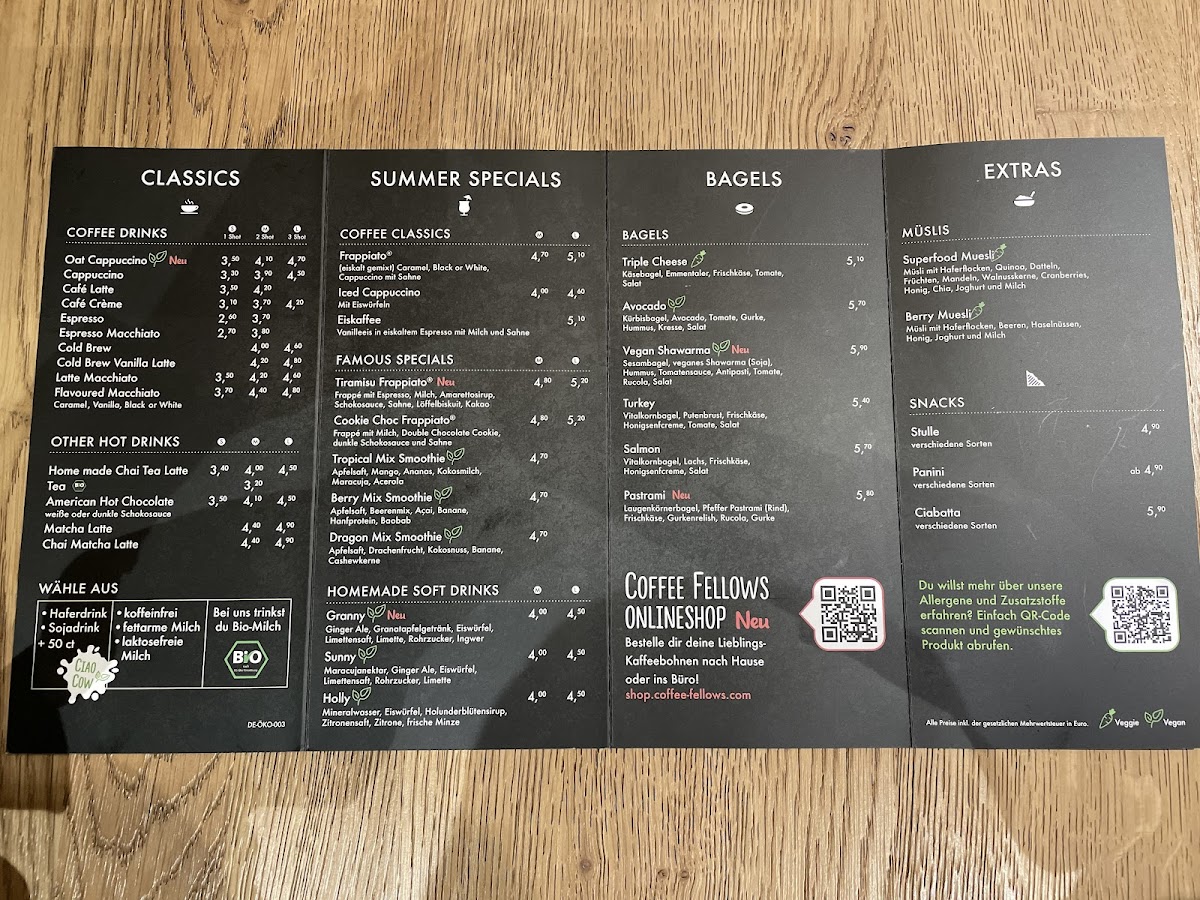 Coffee Fellows - Kaffee, Bagels, Frühstück in Köln captures the essence of a vibrant yet cozy café experience. Their menu highlights a variety of bagels that cater to diverse tastes. The Avocado Bagel is a standout vegan option, layered with creamy avocado, fresh tomato, cucumber, hummus, cress, and crisp salad—packed with nourishing flavors. For seafood lovers, the Lachs Bagel pairs tender smoked salmon with creamy fresh cheese and a subtle honey-mustard sauce, balanced by crunchy greens. Meat enthusiasts will appreciate the Pastrami Bagel, offering juicy, peppery bites that satisfy hearty cravings.